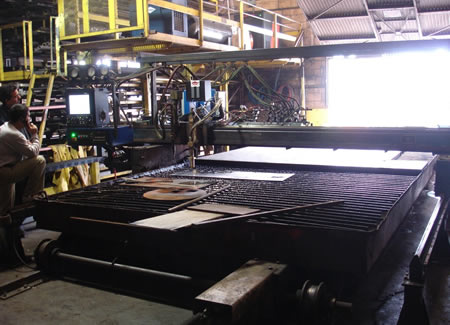 The following images show a R.J. Kates retro-fit of a Koike Aronson plasma cutting system using a Hypertherm controller and a Plasma Technologies operator console and drive packages.