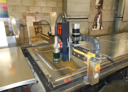 The following images show an R.J. Kates retro-fit of an existing Esab plasma cutting machine, using new Hypertherm control, drives and plasma equipment.
