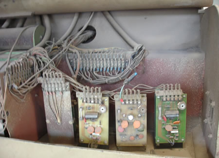 The first row of photos show the Roll Build-Up machine before the retro-fit. The second row of photos show the replacement parts from those in the first row. The final row of photos compares the before and after images of the retro-fit of the welding machine.