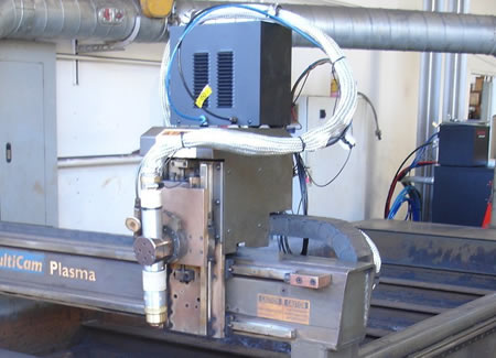 The following images show an R.J. Kates retro-fit of an existing Multi-Cam cutting machine using new a new Hypertherm HPR260 HD plasma system.